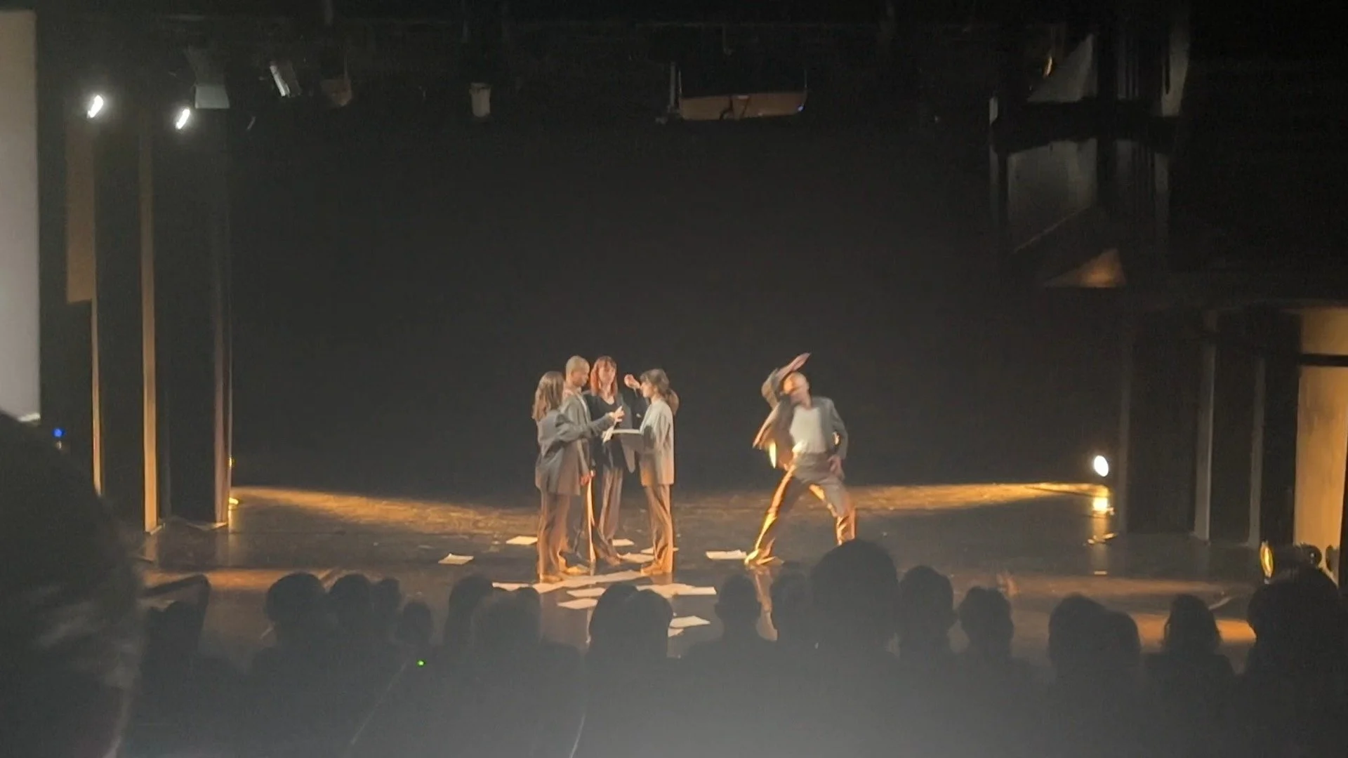 A dance solo where the performer navigates a single line in the floor, struggling to fit his steps on it, metaphorically like an acrobat trying to keep his balance on a tightrope. Echoing the struggle to fit in the canons of beauty and societal expectations, while fighting for an authentic self.